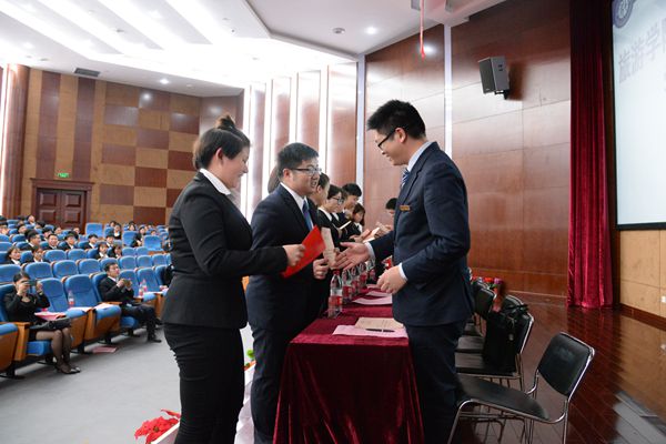 企业代表杭州洲际酒店人力资源总监吴青艳、学生代表酒店管理专业1501班学生谷锰杰分别在颁奖仪式上发言。
