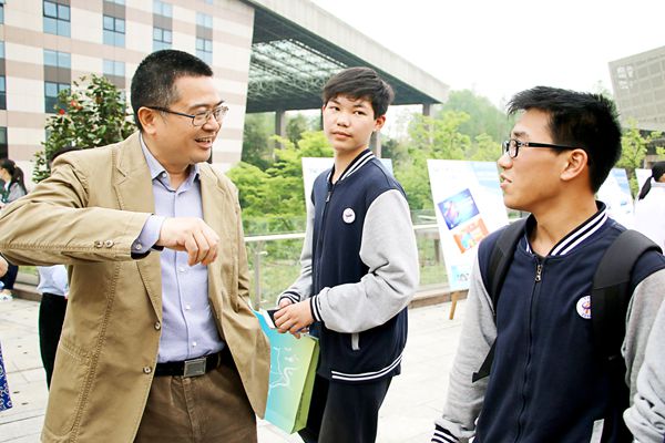 开放日当天,谢列卫校长、徐红副校长也来到了科技游园会现场。谢校长关切地询问学生们对学校的感受,听取学生对学校的看法与建议。当听到同学们说,“学校校园风景很漂亮”、“大楼好豪气”、“教室里好多电脑,条件真好”等评价时,谢校长高兴地邀请同学们来杭科院学习、生活,“选择杭科院,一定会获得有益、有趣、丰富的大学经历”。