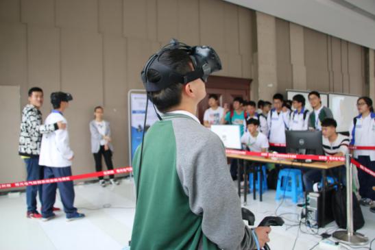 科技游园会大概是当天最受来访学生喜爱的活动,超酷的VR虚拟现实体验、3D打印,还有萌萌哒的萝卜车试驾,一下子吸引了众多跃跃欲试的同学,各体验档口迅速排起了长队。来自富阳区职业高级中学的张旭和来自开元商贸职业学校俞嘉豪拍着胸口说,“第一次玩VR,太刺激了,好像真地站在热气球篮筐里看世界,骑马的时候感觉自己就要被颠下去了。” 物联网专业群的学长们现场展示的手机APP控制无人机、物联网时代智能小车等,也吸引了一大批迷弟、迷妹来围观,来自闲林职业高级中学的张旭表示,他平时也是一个科技迷,第一次这么近距离地接触这些新兴的高科技产品,觉得“身上细胞都燃烧起来了”,“希望能考进杭科院,大学阶段有机会进一步参与高科技产品的技术试验”。