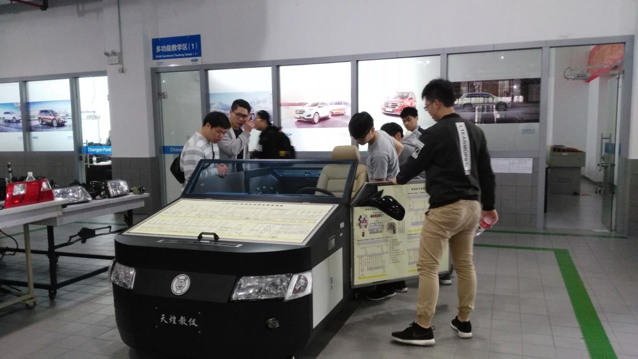4月17日,他们在我校两位校园学生讲解员的引导下参观了校园。从学校陶研馆到综合实训基地,交流团成员既了解了我校悠久的办学历史,丰厚的文化传承,又感受到了我校作为新兴职业院校的快速发展魅力。在汽车工程应用技术中心和智能制造中心,交流团成员不仅认真听取了专业老师的介绍,而且饶有兴致地参加了现场实训。我校优越的学生实训条件赢得了台湾学生的交口称赞。
