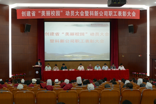 5月17日,科新公司全体员工在图书馆学术报告厅召开了创建“美丽校园”动员会、2016年度职工表彰大会、公司首席技师聘任会。校工会主席高云飞、副校长袁俊出席会议,校办、宣传部、公管处、计财处、保卫处、团委部门负责人受邀参加了会议。