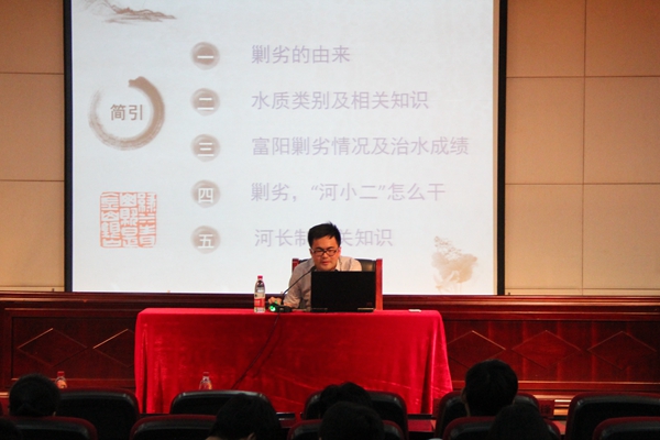 启动仪式结束后,富阳区五水共治办业务科副科长周剑锋就什么是劣五类水、富阳在剿灭劣五类水中的成绩及大学生怎么参与剿灭劣五类水志愿活动等三个方面为“河小二”志愿者们进行培训。