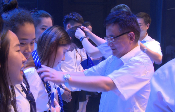 校领导为毕业生授就职领带