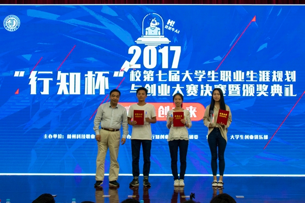 6月13日下午,以“畅青春,创未来”为主题的“行知杯”校第七届大学生职业生涯规划与创业大赛在图书馆报告厅顺利落幕。校长谢列卫,副校长、行知创业学院院长徐红,副校长何树贵出席了决赛暨颁奖典礼。浙江省教育厅学生处处长徐建农,杭州市人才服务局副局长熊伟,杭州团市委青创部副部长王小豪,富阳区人力社保局党委委员、副局长朱建富,富阳区人才开发办、科技局负责人,我校各职能部门负责人、二级学院院长、党总支书记、辅导员、指导老师、参赛选手等300多人参加了此次活动。担任此次决赛的6位评委分别来自高校、企业和投资方,他们都是在创业教育、创业实践方面具有丰富知识和经验的“大咖”。