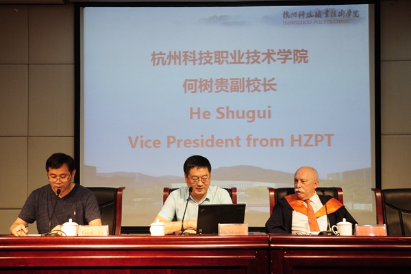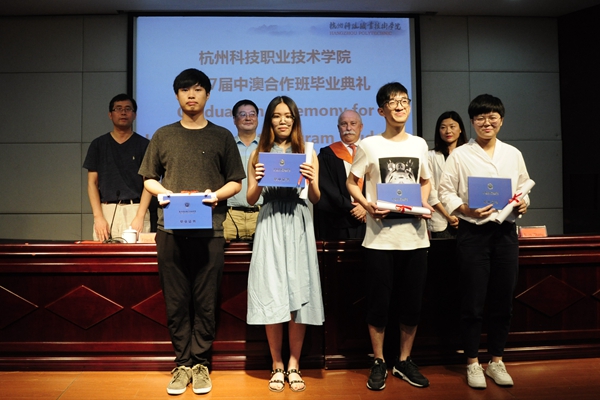 何树贵副校长和Dino Bettiol先生分别代表杭州科技职业技术学院和墨尔本理工学院为毕业生代表颁发了毕业证书和文凭。