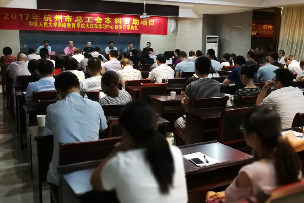 8月20日上午,杭州市总工会本科资助项目“中国人民大学网络教育杭州学习中心(大江东)新生开学典礼”在继续教育学院临江分院隆重举行。杭州市总工会宣教部部长祝宇安、大江东产业集聚区组织部副部长(工会副主席)叶小明、临江街道工会副主席王钢翔、临江成校校长沈文钊、继续教育学院院长陈志凌、党总支书记冯国文以及来自大江东产业集聚区各企业单位的67位受资助的学员一同参加了开学典礼。