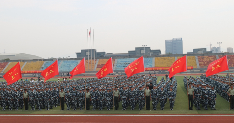 军训团团长、副校长何树贵作开训动员。何校长强调,军训是大学入学的第一门必修课,是人生最宝贵的财富之一。通过军训,同学们可以学到过去学不到的军事知识,弥补知识的空白点;可以锤炼意志,增强国防观念;可以提高身体素质,加强纪律观念,激发爱国热情。何校长希望全体参训同学能提高认识、端正态度,以饱满的热情全身心地投入到军训中;能遵守军训纪律,服从命令,一切行动听指挥;能严格要求自己,自觉接受艰苦训练;能从现在做起,从小事做起,加强训练,勤奋学习,做一个有梦想、有精神、有个性、有价值的人。