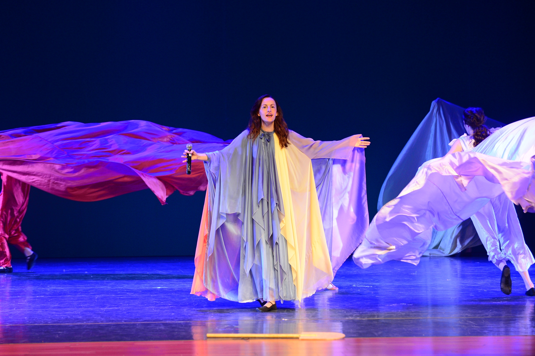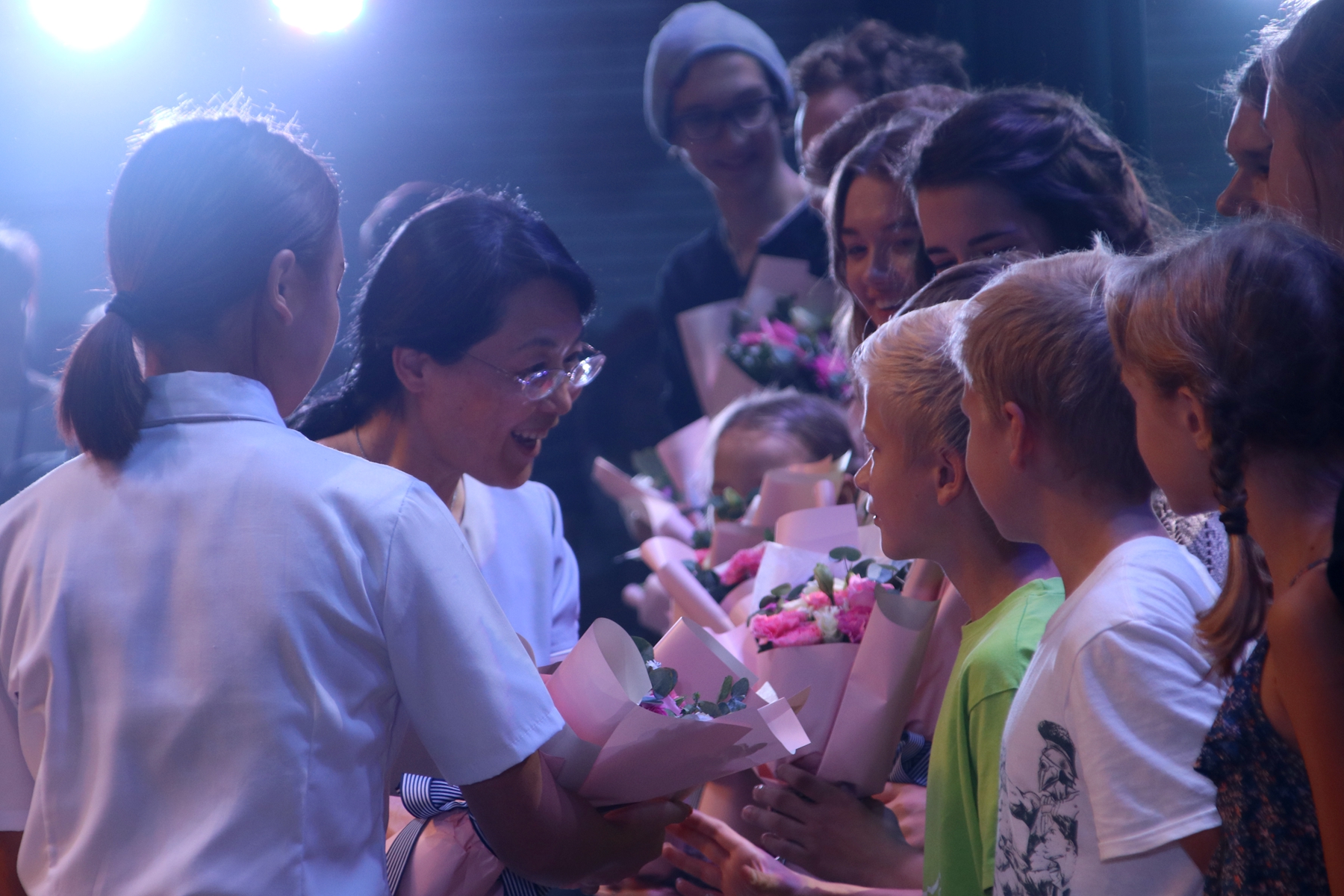 有趣的是,整场交流活动的最高潮不是出现在节目表演中,而是演出结束后。当台下的观众散去,拉脱维亚的演员们与杭科院的学生们在舞台上进行了一场别开生面的交流。在留言墙上写下自己的感受、互赠礼品、代表发言,大家围成圈齐跳拉脱维亚民间舞蹈、现学现唱拉脱维亚民间歌谣:“不要怕,不要怕,有困难就把它踩在脚下”,一时间,灯火通明、流光溢彩的剧场舞台成了年轻人们欢乐的海洋。拉脱维亚的小演员们拽着畲族装束、古装装束的小姐姐们合影合了一张又一张,中国的“稻草人”和东欧的“公主”手挽手跳了一曲又一曲,不断有人提醒“哎呀太晚了,演员们太累了需要休息”,又不断有人意犹未尽,大声喊着“one more,one more”(再来一个)。忘掉时间,忘记归程,金发碧眼的“洋面孔”和黑发黑眼的中国娃,虽然语言不通,却通过音乐、舞蹈,迅速地熟悉、亲近,这正是艺术交流的魔力。