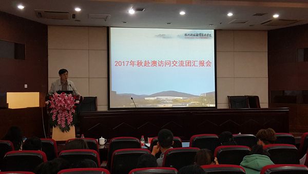 11月3日下午,我校2017年秋赴澳交流访问团总结汇报会在陶研馆报告厅举行。副校长寿伟义出席会议并讲话。他指出,向合作学校派遣交流访问团是我校推进教育国际化的重要举措之一。寿伟义表示,看到同学们在交流期间能有所收获非常开心,希望交流团成员能多提建议使这一项目越办越好。
