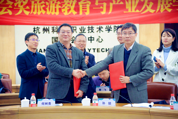 2017中国(杭州)会奖旅游教育与产业发展学术研讨会11月25至26日在我校召开。会议期间,我校与杭州市旅游委员会签订了战略合作协议。本次会议由浙江省会展学会、杭州市会议与奖励旅游业协会、杭州科技职业技术学院联合主办,我校社科联、旅游学院、杭州国际博览学院、会奖经济研究所承办,杭州国际博览中心协办。