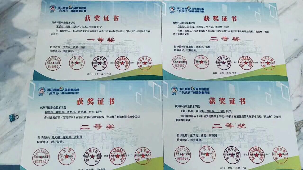 经过现场展示和答辩,我校机电工程学院的《自动多功能轮椅床》项目获得了大赛第一名,机电工程学院的《全自动多功能娱乐饲花一体机》项目、《多功能残疾人助立助行康复装置》项目,信息工程学院的《宠物智家》项目分别获得了第二名。此外,我校还斩获“挑战杯”创新创业竞赛最佳进步奖。在本届比赛中,我校取得了历史最佳成绩,获得多项突破。