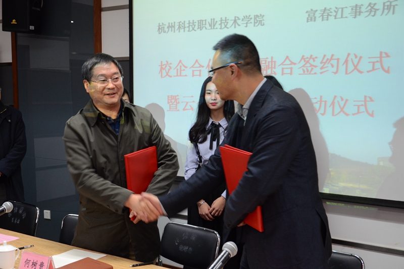 12月6日,我校和富春江事务所在校举办校企合作深度融合签约仪式暨云会计工作室启动仪式。我校副校长何树贵出席仪式,教务处、产学研合作处、招生就业处、工商学院等部门负责人参加仪式。