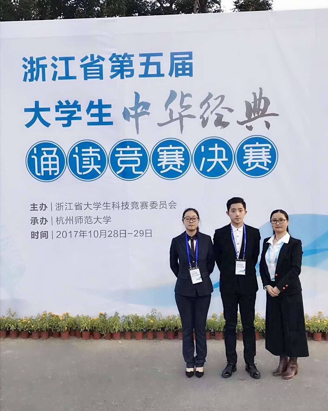 近日,我校选手在浙江省第五届大学生中华经典诵读大赛上,从70多所高校500余名选手中脱颖而出获得佳绩。城市建设学院学生郑伊琳荣获专科组竞赛一等奖,城市建设学院学生姚子健荣获二等奖,教育学院徐薇、城市建设学院陶缦荣获三等奖。教育学院钱世凤、校语言文字工作委员会王强两位老师荣获优秀指导老师称号,我校还获得优秀组织奖。