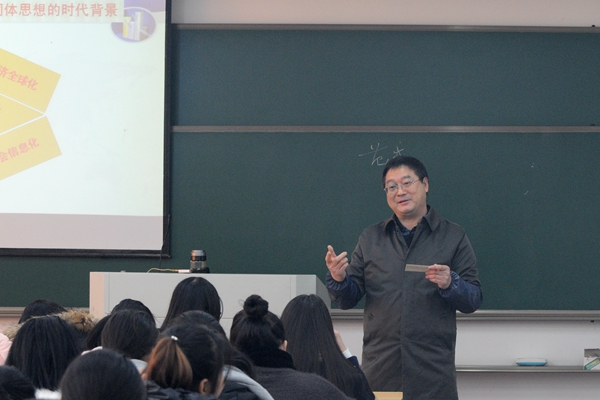 何树贵副校长原本就为工商学院会计专业的学生上过专业课,这次进课堂宣讲,他以自己擅长的经济学领域为切入口,为工商学院会计1611班、1602班作了题为《构建人类命运共同体》的主题报告。何树贵将西方盛行的“文明冲突论”与中国的“和”文化做对比,深入浅出地告诉同学们,时代的潮流不是冲突,而是和平、发展、合作、共赢。党的十九大报告为解决当前世界面临的共同挑战提供了“中国方案”,那就是坚持和平发展道路,推动构建人类命运共同体,“中国共产党不仅为中国人民谋幸福,也要为人类的福祉作贡献”。何树贵语重心长地寄语同学,一定要重视职业形象的塑造、服务意识的培养、综合竞争力的养成和国际化视野的拓展,“在实现中国梦的过程中放飞自己的青春梦想”。
