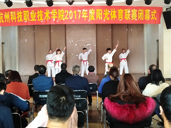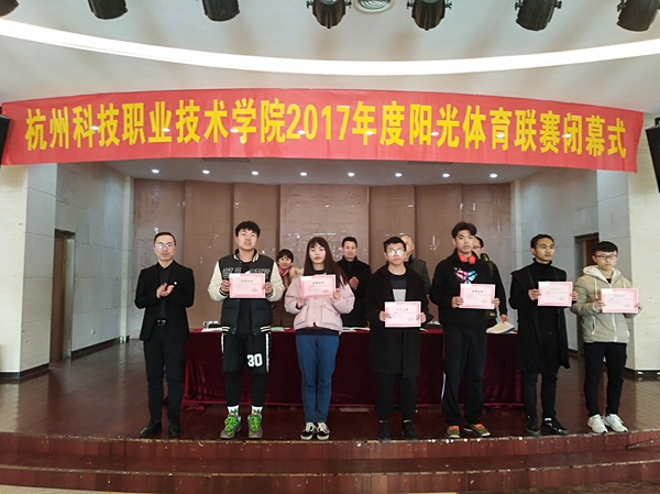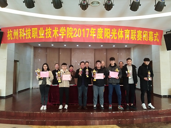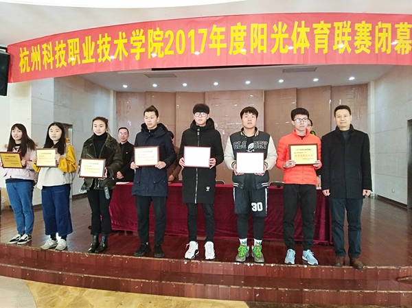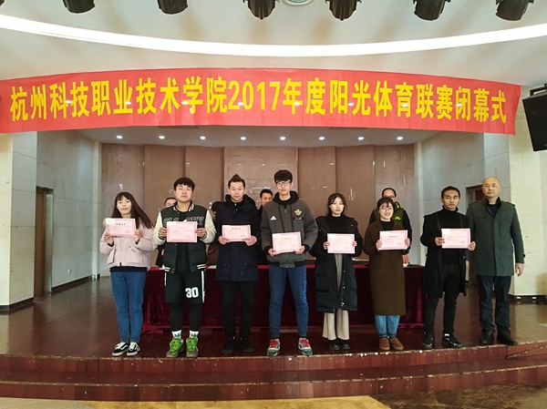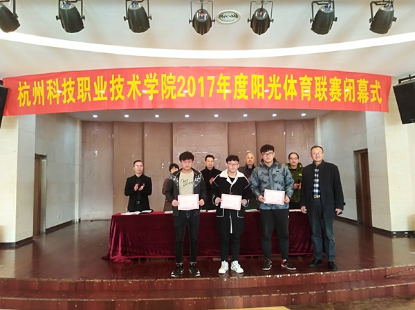 12月26日下午,校2017年阳光体育联赛闭幕式及颁奖典礼在欢快的街舞表演和空手道表演中拉开序幕,校纪委书记、体委副主任高云飞出席闭幕式并为获奖人员颁奖。军体部、学生处、团委、教务处负责人,各二级学院党总支书记、负责体育工作辅导员,各参赛队学生代表,阳光体育联赛8项赛事项目负责人等参加了闭幕式。