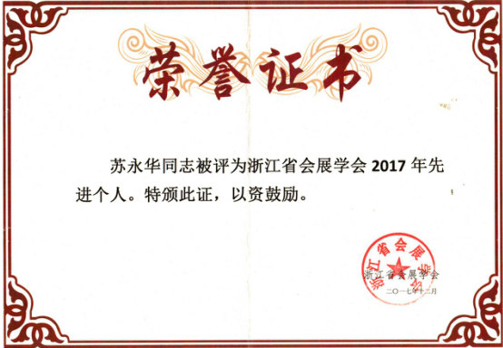 旅游学院苏永华老师获浙江省会展学会2017年先进个人荣誉称号