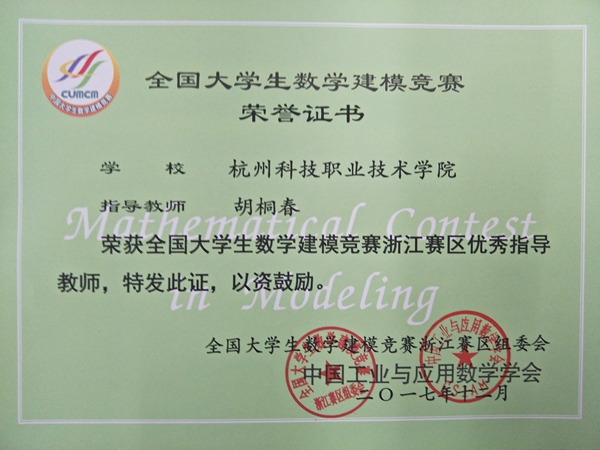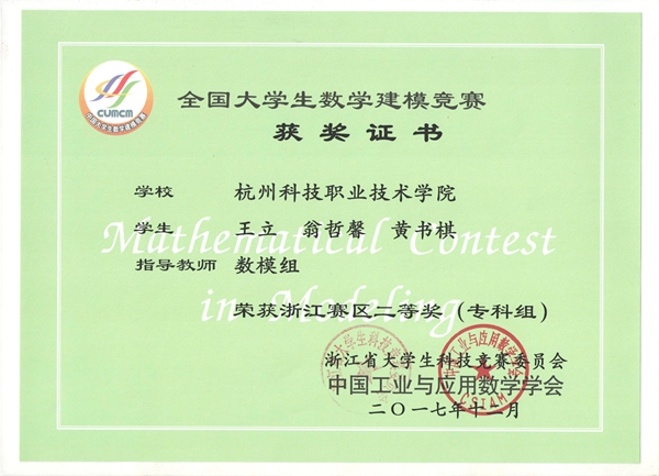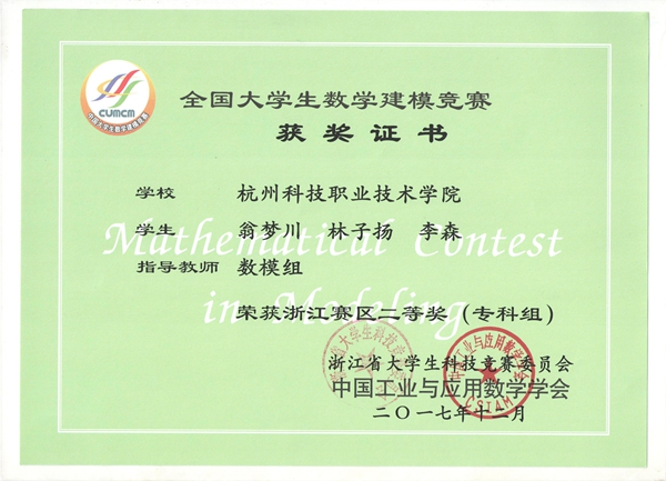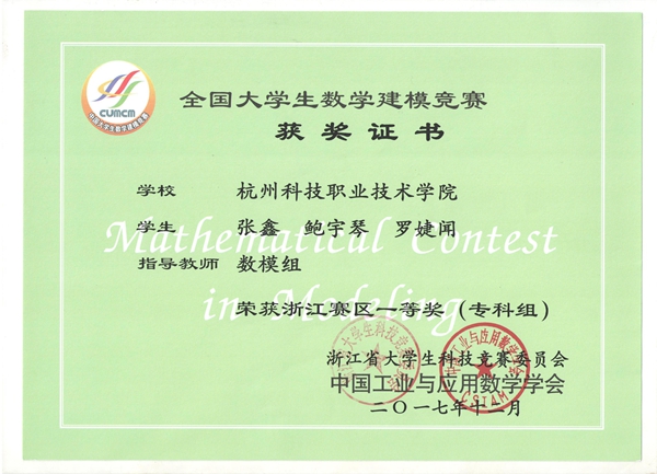 近日,2017年全国大学生数学建模竞赛成绩揭晓,我校学生共荣获浙江赛区一等奖1项、二等奖2项。