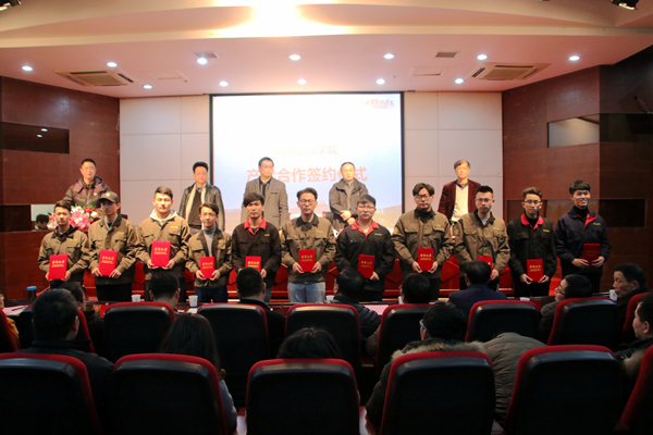 何树贵副校长代表学校与省级技能大师吴玉泉、省级技能大师夏国柱、市级技能大师丁锡端、市级技能大师许献忠签订了人才引进协议。何树贵回顾了机电工程学院从无到有,从小到大,从弱到强的筚路蓝缕的创业过程,充分肯定了机电人敢为人先,务实创新的工作作风,尤其是走对了“校企合作,产教融合”的高职之路。何树贵希望学院进一步凸显服务区域产业转型升级和经济社会发展的办学定位,继续深化政行企校合作和教学改革,为区域经济的高端装备制造业的发展作出新的更大的贡献;希望企业界朋友继续发扬热心公益、奉献大爱的精神,以金固股份为榜样,用爱心铺就一条成功之路;希望获得金固奖教奖学金的同学,能严于律己,勤奋学习,不辜负企业的关心和期望,早日成为国家的栋梁之才;希望获奖的老师能努力工作,教书育人,服务社会,回报他人。