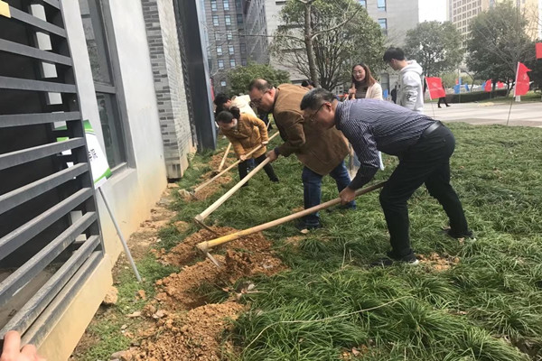 3月12日,我校在高桥校区组织开展了“播撒绿色希望,共建美好校园”主题植树活动。副校长寿伟义、袁俊,学生处、公管处、科新公司等部门负责人,各二级学院党总支书记、辅导员及学生代表等近百人,一同沿着校实训楼的墙种下了两百多株凌霄。