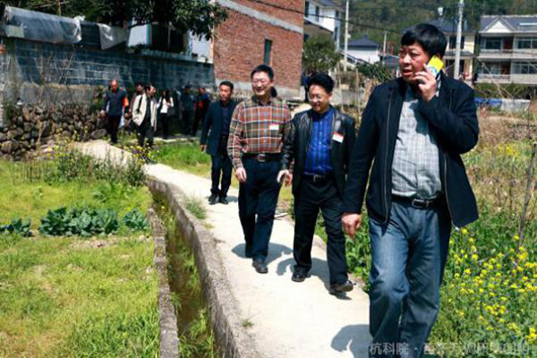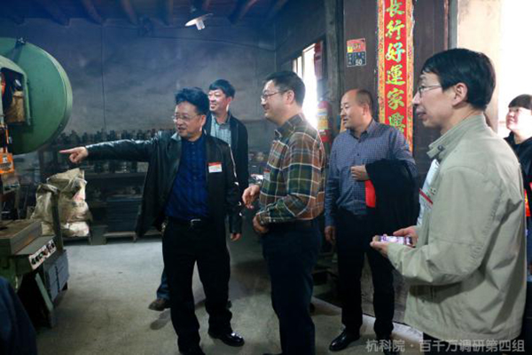 方里村党支部书记周海军介绍了村里的基本情况。方里村在2007年由大青村、方里村两村合并而成,分12个村民小组,282户农户,人口930多人,村域面积为11.47平方公里。村里党员50人,有45名村民代表,44位经济合作社股民。村里有小五金企业、颜料生产企业以及服饰玩具企业各1家,村民主要收入依靠种植山核桃、香榧,还有部分村民外出打工。