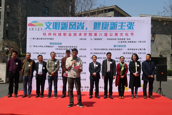 3月28日中午,我校第八届公寓文化节正式开幕。副校长寿伟义出席开幕式,学生处、团委、公管处、保卫处、科新公司等部门负责人,各二级学院党总支书记、辅导员、学生代表,浙大新宇公司负责人等参加了开幕式。