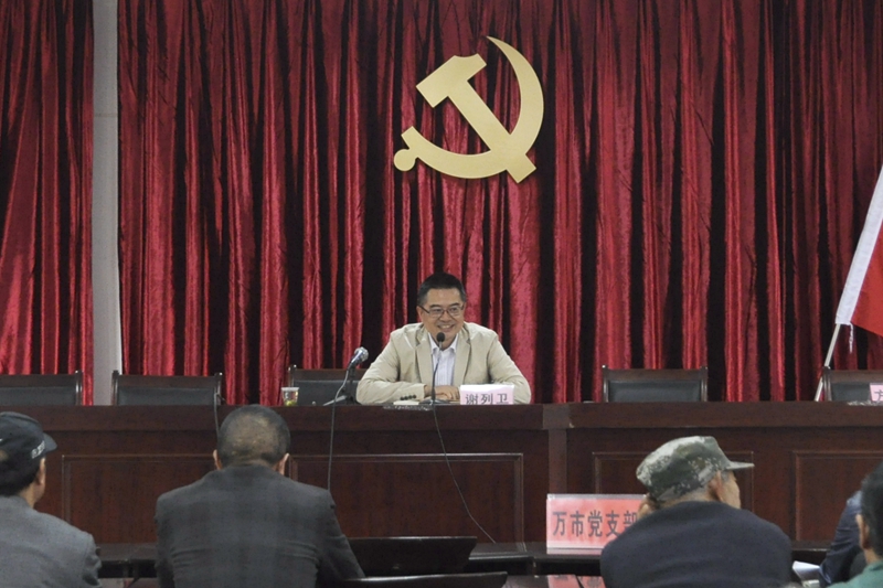 校党委书记谢列卫带领着“百千万”集中蹲点第一调研组全体成员和校直属机关党总支第一支部全体党员来到了万市镇万市村,和村党委下辖的万市、安居、东元三个支部93名党员一起过主题党日。谢列卫为村民党员作了十九大精神讲座,他用深入浅出地语言解释了新时代、新矛盾、新使命、新战略等主要概念,“站到新时代的新高度来谈国家发展,就好像站到山头上去,望得更远,谋划得更远,”谢列卫说,十九大明确提出实施乡村振兴发展战略,提出了“产业兴旺、生态宜居、乡风文明、治理有效、生活富裕”的20字总要求,比起以往的新农村建设、美丽乡村建设来,内涵更加丰富,不仅要振兴经济,也要振兴生态、振兴社会、文化、教育、科技,并且提升农民的素质。作为村干部、村里的党员,要领会好中央的精神,提高站位、提振信心,要相信在党的领导下一定能把万市镇发展好。谢列卫表示,杭科院开展“百千万”活动与万市镇“结亲”,就是要帮助万市镇在生态农业型乡镇的建设上先走一步,乡村振兴战略要在万市镇落地,“产业是根本,人才是关键,生态是支撑,文化是灵魂,党建是保障”,杭科院要发挥专业和人才优势,助力万市镇做强村集体经济,推动乡村旅游业建设,发掘文化根脉,凝聚党建力量,“互相学习互相帮助,把乡村振兴战略落到实处,让村民的生活更加幸福”。