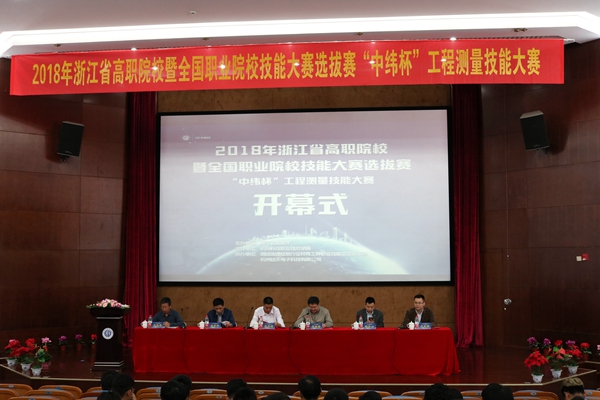 4月20日,2018年浙江省高职高专院校暨全国职业院校技能大赛选拔赛“工程测量”赛项在我校举行。浙江煤炭测绘院院长段月辉,测绘与地理信息局测绘行业特有工种职业技术鉴定浙江站站长葛中华,杭州绘天电子科技有限公司董事长钟云山及我校副校长何树贵出席大赛开幕式。