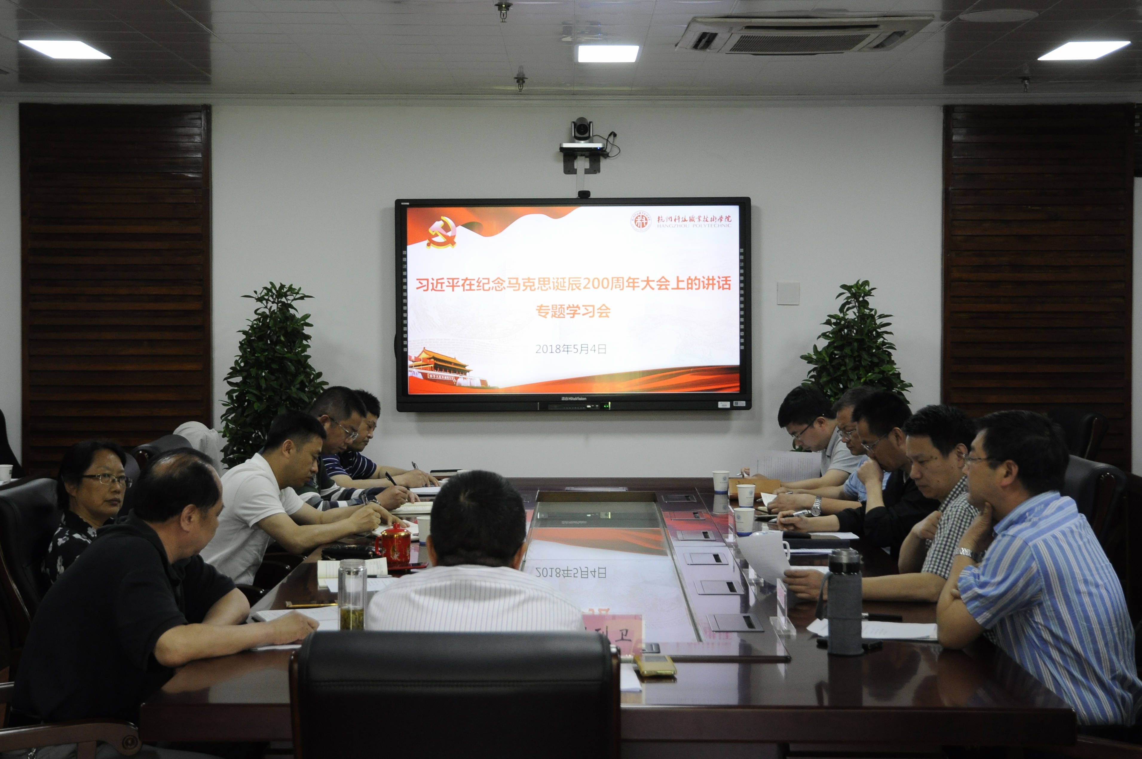 校党委副书记张小红表示,习近平在马克思诞辰200周年大会上的讲话高屋建瓴、博大精深,各党总支要以学习和实践马克思主义关于人类社会发展规律的思想、关于坚守人民立场的思想、关于生产力和生产关系的思想、关于人民民主的思想、关于社会建设的思想、关于人与自然关系的思想、关于世界历史的思想、关于马克思主义政党建设的思想为重要内容,认真组织师生开展学习;要充分发挥学校思政教师的作用,选拔一批政治理论水平高、富有宣讲经验的教师,组建宣讲团,推动讲话精神在我校落地生根。