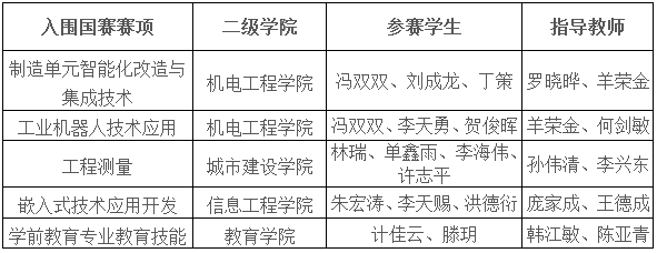 本次大赛共设立60项竞赛,其中国赛选拔赛43项,省内竞赛17项。我校选拔优秀选手和指导教师参加了其中的27项竞赛,累计获得一等奖8项,二等奖9项,三等奖9项,其中有5项竞赛取得了代表浙江省参加全国赛的资格,2018年度国赛参赛队伍数量在全省高职院校中排名并列第7位,取得了我校近年来入围国赛最好成绩。