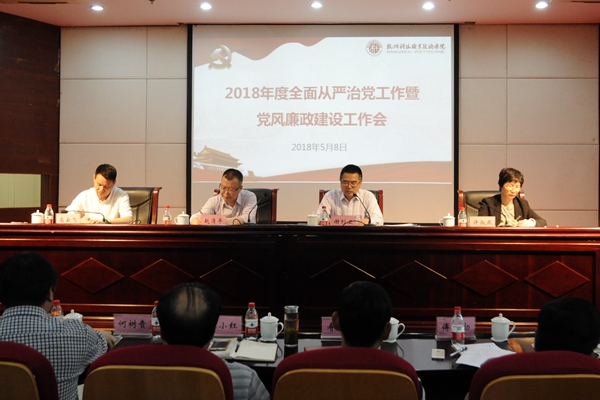 5月8日下午,我校2018年度全面从严治党工作暨党风廉政建设工作会议在高桥校区陶研馆报告厅举行。市纪委派驻教育局纪检组组长赵清平,全体校级领导出席会议,全校处、科级干部,校纪检委员,各党总支委员,各党支部书记共166人参加会议。会议由校党委副书记、校长许淑燕主持。