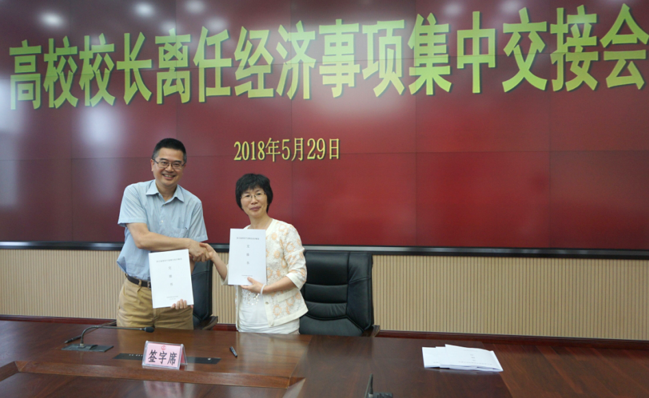 会上,谢列卫与许淑燕共同签订了《浙江省领导干部离任经济事项交接书》,副校长袁俊作为所在单位代表,省委组织部、省审计厅作为监交单位代表也分别在交接书上作了签字确认。