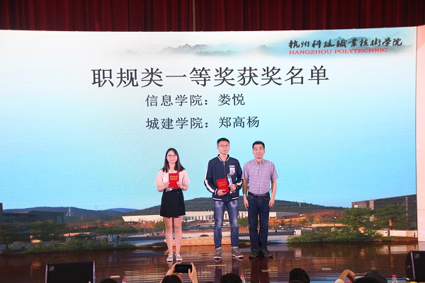 本届大赛自开赛以来,共收到91个学生团队的积极响应,共有500多名学生参与其中。其中有7个创业项目进入了决赛,决赛包括主题陈述6分钟,现场答辩4分钟两个环节。经过激烈角逐,艺术设计学院的“杭州线讯文化传媒有限公司”团队以清晰的项目介绍、有序的运营及良好的业绩摘得大赛创业类一等奖。此外,信息工程学院娄悦、城市建设学院郑高杨同学荣获此次大赛职业类一等奖。信息工程学院和城市建设学院分别获得创业类和职业类优秀组织奖荣誉。汪晟等12位指导老师获得优秀指导老师称号。