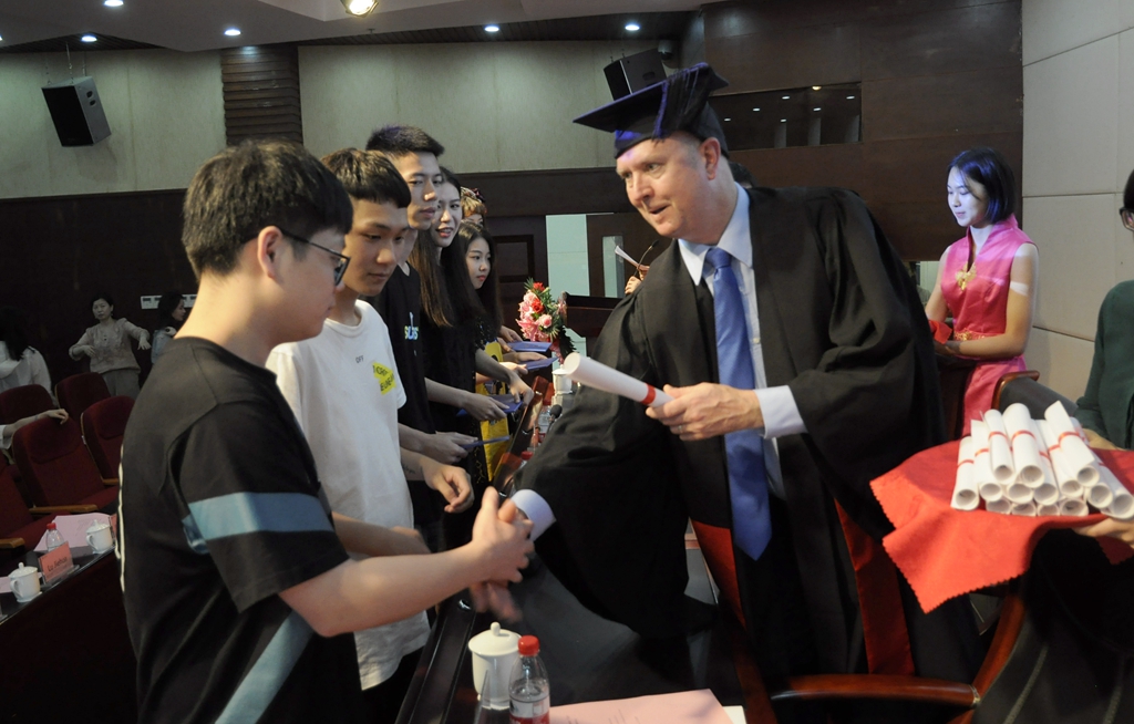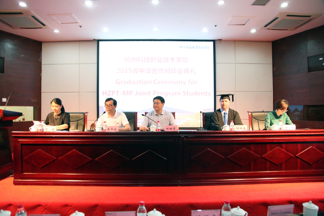 6月15日下午,我校2018届中澳合作班毕业典礼在陶研馆报告厅举行。副校长何树贵、墨尔本理工学院酒店管理学院院长Gary Patersonl出席了毕业典礼。