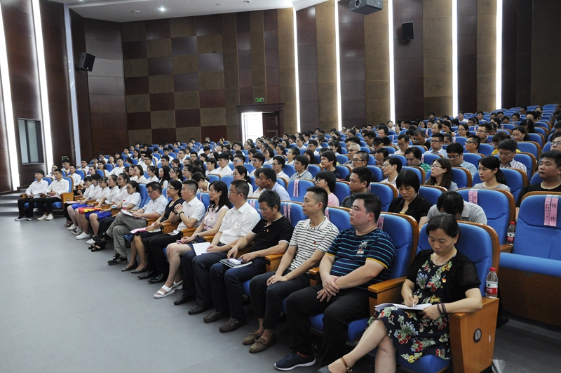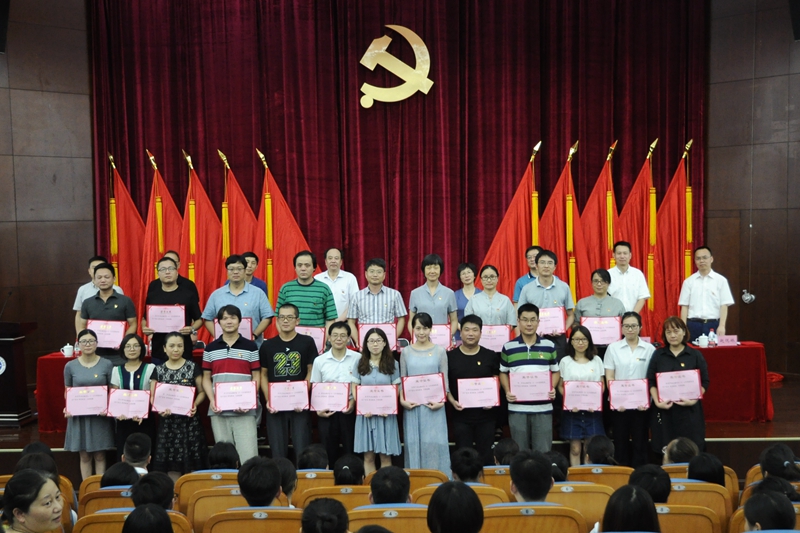 6月28日下午,我校召开了中国共产党成立97周年暨七一表彰大会。全体校级领导、校党委班子成员出席大会。全体中层干部、党总支委员、党支部书记、党支部委员和全体学生党员等近300人参加了大会。会议由校党委副书记、校长许淑燕主持。