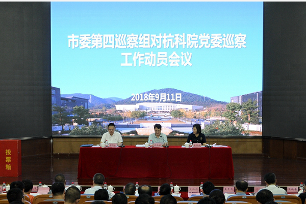 根据市委统一部署,9月11日下午,市委第四巡察组对杭州科技职业技术学院(以下简称“杭科院”)党委巡察工作动员会议在杭科院召开。市委第四巡察组组长洪晓明就即将开展的巡察工作作了动员讲话,市委巡察工作领导小组办公室副主任张群新就配合做好巡察工作提出要求,杭科院党委书记谢列卫主持会议并作表态发言。市委第四巡察组副组长楼坚及巡察组全体成员,市纪委第一纪检监察室、驻市教育局纪检组负责人,杭科院全体校级领导、党委班子成员出席会议。杭科院全体处科级干部、直属企业负责人、离退休干部代表、师生代表等有关人员列席会议。