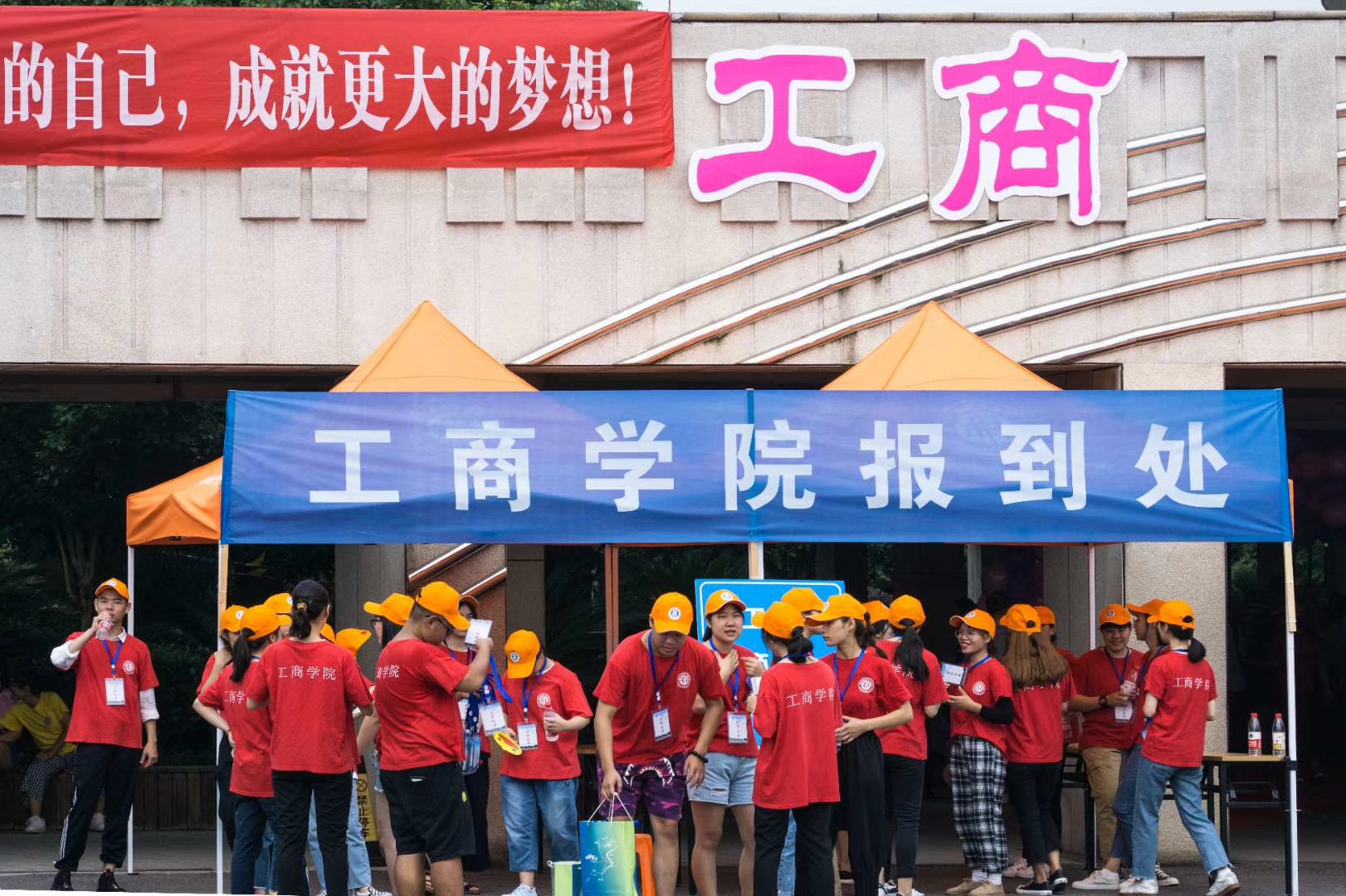 为了让迎新整体氛围“更接地气”,旅游学院提前预征了新生的大学理想,以“网易云音乐地铁海报”的模式设计了创意展示板,让不少00后直呼“太潮了!”在迎新现场,还有两只“网红熊”出没,天气炎热,穿着厚厚熊套装的男孩们大汗淋漓,但他们说,“能让新生感到亲切和喜悦,感受到旅游学院的用心,辛苦点也是值得的”。