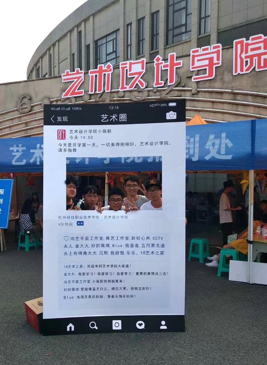 机械大赛国家级二等奖低空与高空桔子采摘器,电子设计大赛省级一等奖简易数字信号分析装置、线切割作品,挑战赛国家级一等奖自动多功能轮椅病理床介绍视频,再加30余件学生优秀艺术作品、与富阳村镇开展校地合作时创作的墙绘图片……为了让新生感受到自己专业的魅力,机电工程学院、艺术设计学院在各自的报到点布展,“”晒同学们的学习成果。艺术设计学院还将2016级在读并成功创业的先锋人物事迹进行了宣传。前来报到的学生纷纷表示“一进校就受刺激”,陪同而来的家长们则谆谆教导自己的孩子“以后要认真学习,下次也能有机会把你的作品和照片摆出来露露脸”。