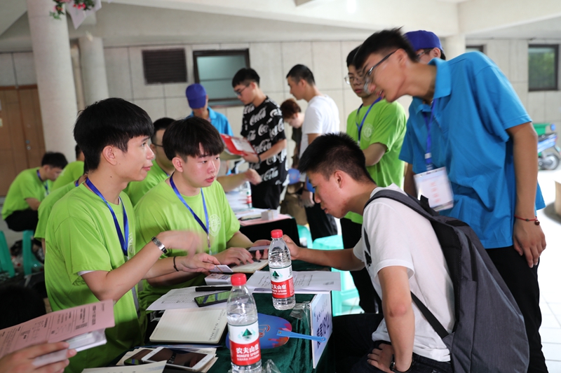 在信息工程学院迎新点,总支书记傅联云一脸自豪地介绍着学院今年的新生。“我们计算机大类专业共招了两个班,上本科线分数的超过96%。”傅联云表示,学院近年来不断加强内涵建设,专业实力提升迅速,影响力也逐步扩大,“学生和家长们对我们的专业非常认可,很多参军的学生都回来复学”。在新生中,最幸福的当属信息工程学院应用电子专业,148位新生享受着全校独一无二的VIP待遇。早在开学前,应用电子技术专业的大二学生就每人认领了一个00后萌新,为他们提供入学前咨询、报道流程安排、专业介绍、生活指导等全方位服务。这项服务从新生入学前开始并将一致持续到军训结束。这一迎新方式在应用电子专业负责人袁炼红的带领下开展了近十年,“这是我们的专业传承项目之一,一方面是利用这个机会让大二学生全面梳理自己对专业的认知,同时也进一步增强他们的主人翁精神;另一方面也有利于新生更快地融入专业集体,凝聚团队力量,为后续的专业学习和专业活动开展奠定一个好的基础。”除此之外,信息工程学院还在学院迎新点开通了“萌新”直播间,让新生的家人在家也能感受学校的报到盛况。