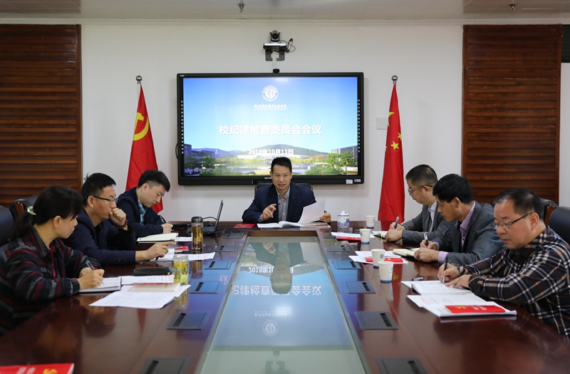 2018年10月11日上午,我校新一届纪委第一次会议在高桥校区综合楼会议室举行,会议专题学习研讨了新修订《中国共产党纪律处分条例》。校党委书记谢列卫出席会议,校纪委书记高云飞主持会议,即将履新的全体纪委委员参加会议。