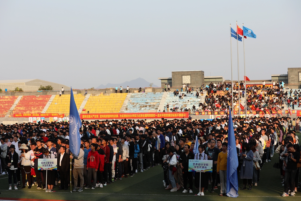 体委副主任、本届运动会组委会副主任、纪委书记高云飞表示,本届运动会既是对学校田径运动水平的一次全面检阅,也是全校师生精神面貌和综合素质的一次集中展示,是一次团结的大会、拼搏的大会、成功的大会。高云飞希望全校师生能把更快、更高、更强的体育精神运用到学习上,用到干事业上,以习近平新时代中国特色社会主义思想为指引,深入学习宣传贯彻校首次党代会精神,不忘初心、牢记使命,凝心聚力,改革创新,坚持全面从严治党,坚持高质量特色发展,以更开阔的视野格局、更紧迫的使命担当,以特色发展的过人胆识,以勇立潮头的万丈豪情,志存高远,脚踏实地,为实现综合办学实力达到全国同类院校一流水平的发展目标而不懈奋斗!