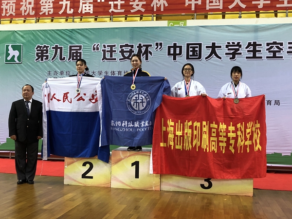 10月21日至25日,第九届中国大学生空手道锦标赛在河北省迁安市九江体育中心举行,我校运动健儿在此次比赛中获得了6金5银5铜的好成绩,校军体部吴烈栋老师还获得“优秀教练员”称号,史美美同学获得“优秀运动员”称号。