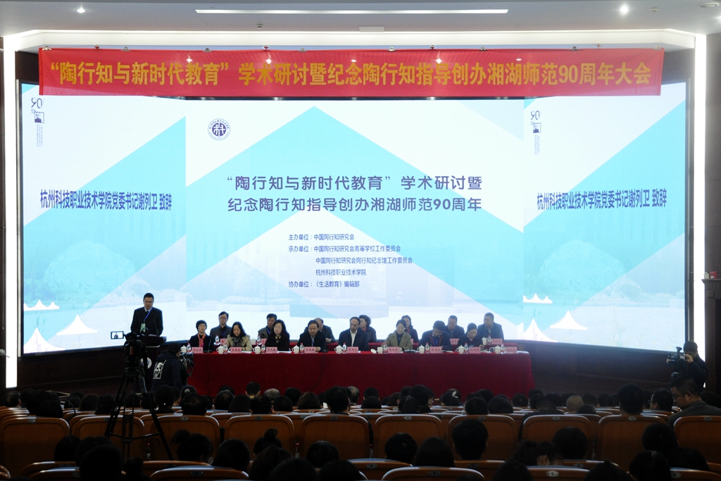 著名教育家、中国教育学会原会长、我校总顾问顾明远教授给大会发来了贺信,对“陶行知与新时代教育”学术研讨暨纪念陶行知指导创办湘湖师范90周年大会的召开表示祝贺,并希望杭科院能继续沿着教育先贤的足迹,坚持立德树人,遵循教育规律,弘扬优良传统,扎根中国大地办大学,以纪念陶行知指导创办湘湖师范90周年为新的起点,为中国高等职业教育现代化,为实现“两个一百年”奋斗目标、实现中华民族伟大复兴的中国梦作出新的更大贡献。