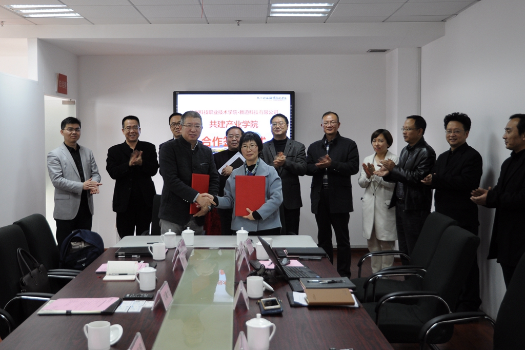 会上,校企双方签订了《产教融合共建产业学院战略合作协议》。此次签约是我校与新道科技股份有限公司在原有合作上的升级版,双方将通过携手共建产业学院,力争打造特色专业,培养出高质量、高素质人才。根据协议约定,双方在人才培养模式、专业建设方案、师资队伍培养、实训环境建设、数字化教学资源库使用等方面进行战略合作。