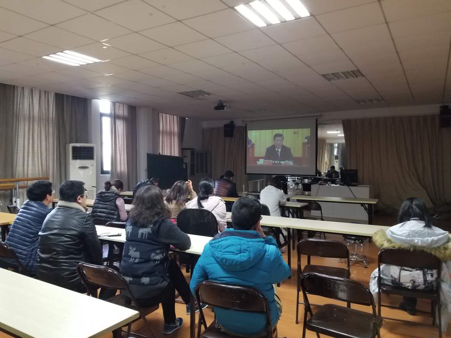 当天,学校13个党总支也纷纷组织师生进行了集中观看。