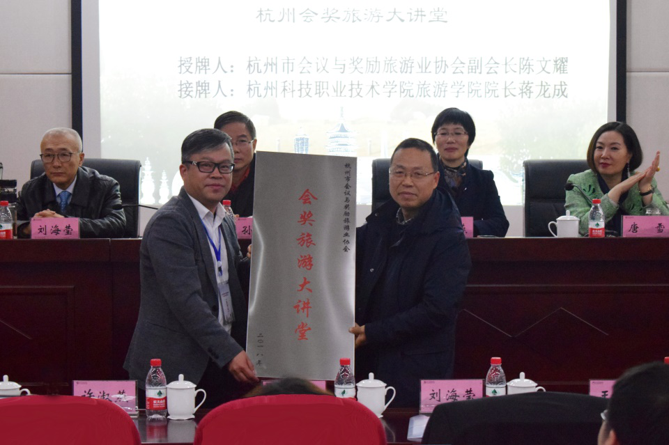 期间,杭州市会议与奖励旅游业协会为我校“杭州会奖旅游大讲堂”授牌。