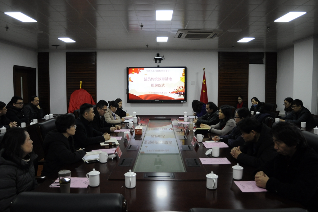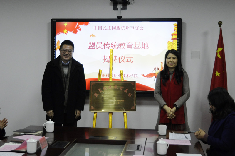 1月18日,杭州市盟员传统教育基地揭牌仪式在我校举行。民盟市委会专职副主委、市政协副秘书长申屠敏,我校党委书记谢列卫出席仪式并为基地揭牌。民盟杭州市委会秘书长章桂娣,我校党委委员、统战部长罗明誉和民盟杭州市委会机关干部,各基层委员会及民盟杭科院支部的盟员代表参加了仪式。仪式由民盟杭科院支部主委杨悦梅主持。
