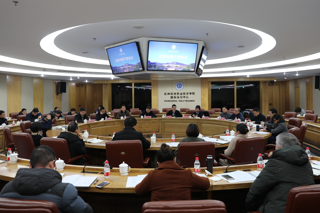 校党委书记谢列卫向全体中层干部传达了市委十二届六中全会精神,要求全体中层干部认真学习会议内容,围绕全会提出的“坚定、创造、联动、精准”四个关键词,抓好全会精神落实,谋划好2019年学校重点工作。谢列卫书记提出,在新的一年中我校要在党的建设、内涵建设、人才队伍建设、内部治理体系建设、校园基础建设、校园文化建设等六个方面实现新突破。谢列卫强调,2019年是我校党代会后的开局之年,也是“十三五”规划目标完成的攻坚之年,全体中层干部必须齐心协力,“全面推进,抓好落实”。