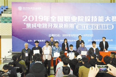 据介绍,全国职业院校技能大赛是我国院校技能大赛中最权威的赛事,“集成电路开发及应用”为今年大赛新增项目。此次比赛吸引了来自全省8所高职院校15支队伍参赛,最终杭科院与金华职业技术学院的两支代表队共获一等奖,将代表浙江省参加今年全国职业院校技能大赛。
