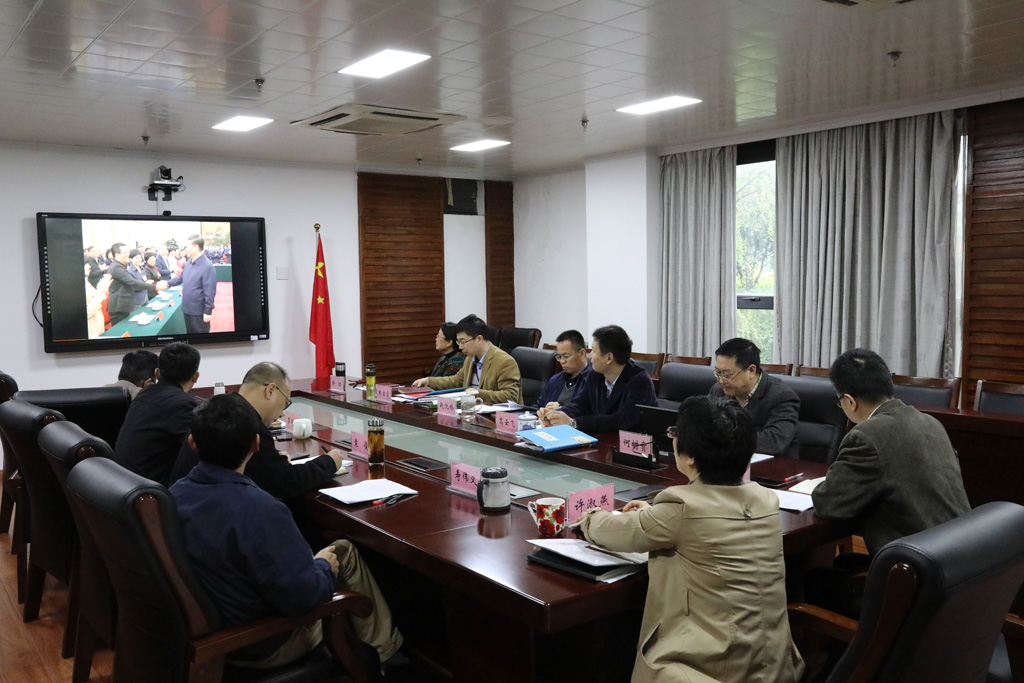 与会人员在会上集体收看了习近平总书记主持召开学校思想政治理论课教师座谈会的视频新闻报道。
