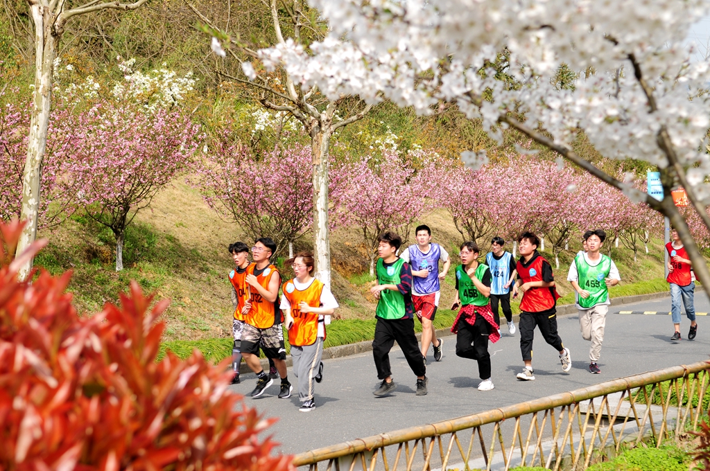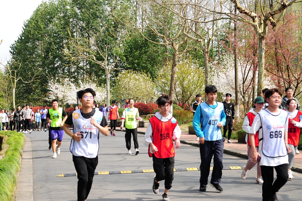 随着比赛发令枪的响起,杭科院师生开始了校园内7.6公里的拉力。本次赛道途经足球场、教学楼、实训楼、综合楼、图书馆、食堂、学生公寓楼、文体中心等杭科院标志性建筑,一路春光正好,桃李盛开,俨然是一条鲜花赛道。